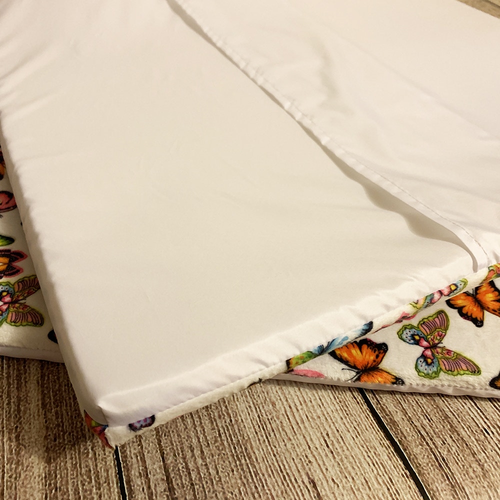опис: тканина верху — плюш Minky, тканина низу — плащова, чохол, що знімається, поролон меблевий 2см